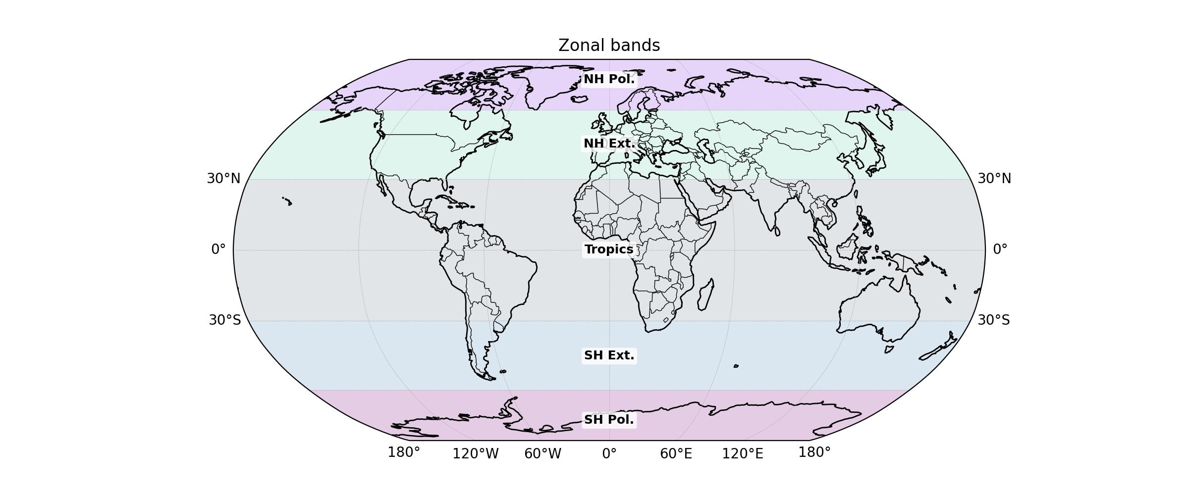 The following zonal regions are used for large-scale evaluation of forecast performance: