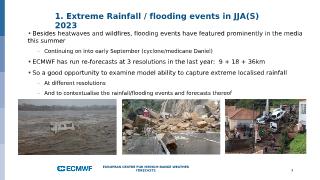 In assessing the utility of ECMWF IFS forecasts with regard to predictions of the extreme rain and its impacts (notably the aforementioned deadly flash flood events), we examine two aspects: