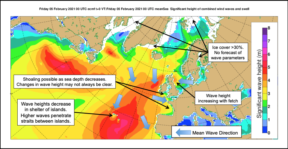 Forecast wave heights depend strongly upon the depth of water held within the IFS. Forecast wave heights can be less accurate because of: