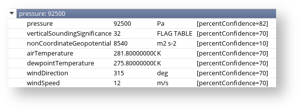 In the examples below we will work with two coordinates to extract radiosonde data on certain levels: pressure will be the outer coordinate and verticalSoundingSignificance, which defines the type of the pressure levels, the inner coordinate. It reflects how a pressure block is built up in our radiosonde BUFR file: