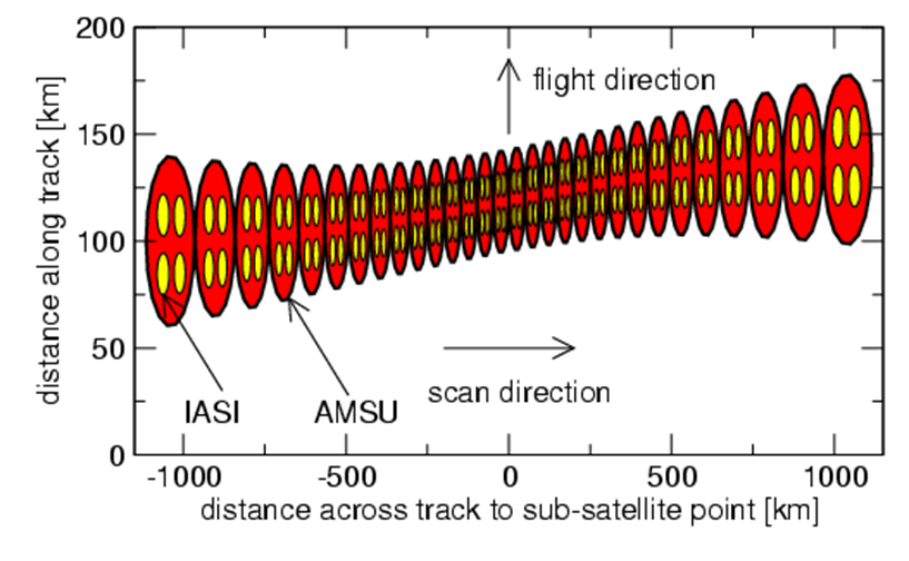 By averaging thousands of situations together, it is possible to derive the change in the averaged biases with the scan angle. In order to avoid potential biases due to the incorrect modelling of the radiative effect of hight viewing scan angles close to the edges of the orbit, which is particularly the case for microwave observation, specific radiative biases have to be taken into account for each scan angle.