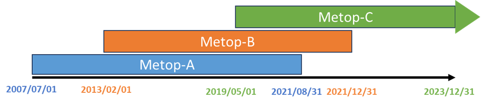 The MTCO2_OBS4MIPS and MTCH4_OBS4MIPS products consist of daily, 1°x1° gridded L3 MT-CO2 or MT-CH4 from the three Metop platforms. These product files contain the geolocation information (latitude, longitude and time), the MT-CO2 and MT-CH4 medians, the associated standard deviations of the L2 MT-CO2 and MT-CH4, the number of products used to calculate the averages and the averaging kernels.